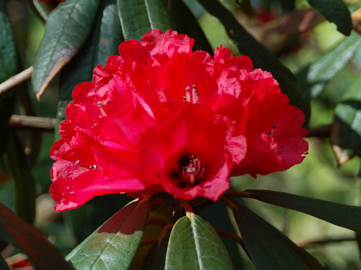 There are quite a few subspecies and variants of R. arboreum I have not seen, but all seem to become impressive tree-like specimens. A precursor of this species was likely one of the "founder populations" described by Steve Henning in his article "The History of Rhododendrons". Although originally widespread across Southeast Asia and probably rather uniform at one time, the many variations evolved over time as the Himalaya grew due to plate techtonics, the monsoons arrived, regions became isolated, and local climates changed.